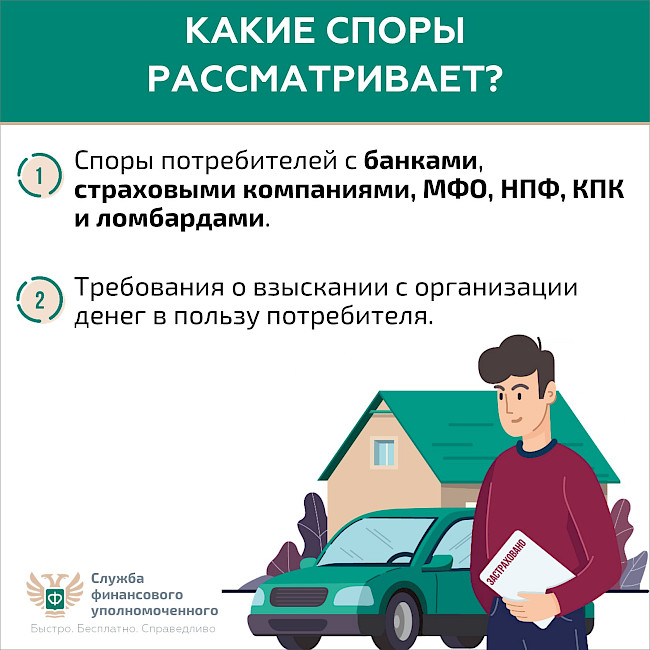 Финансовый уполномоченный решает имущественные (например, денежные) споры без суда между финансовыми организациями и их клиентами – физическими лицами.