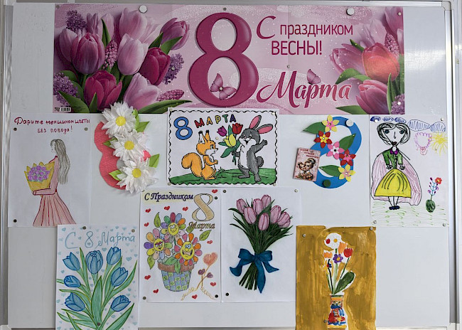 Самые добрые пожелания любимым мамам и бабушкам ребята отразили в своих работах. На выставке представлены замечательные букеты цветов и праздничные поздравительные открытки, нарисованные с любовью, нежностью и теплотой. Рисунки получились красочными и трогательными, юные художники проявили удивительную выдумку, фантазию, творчество.